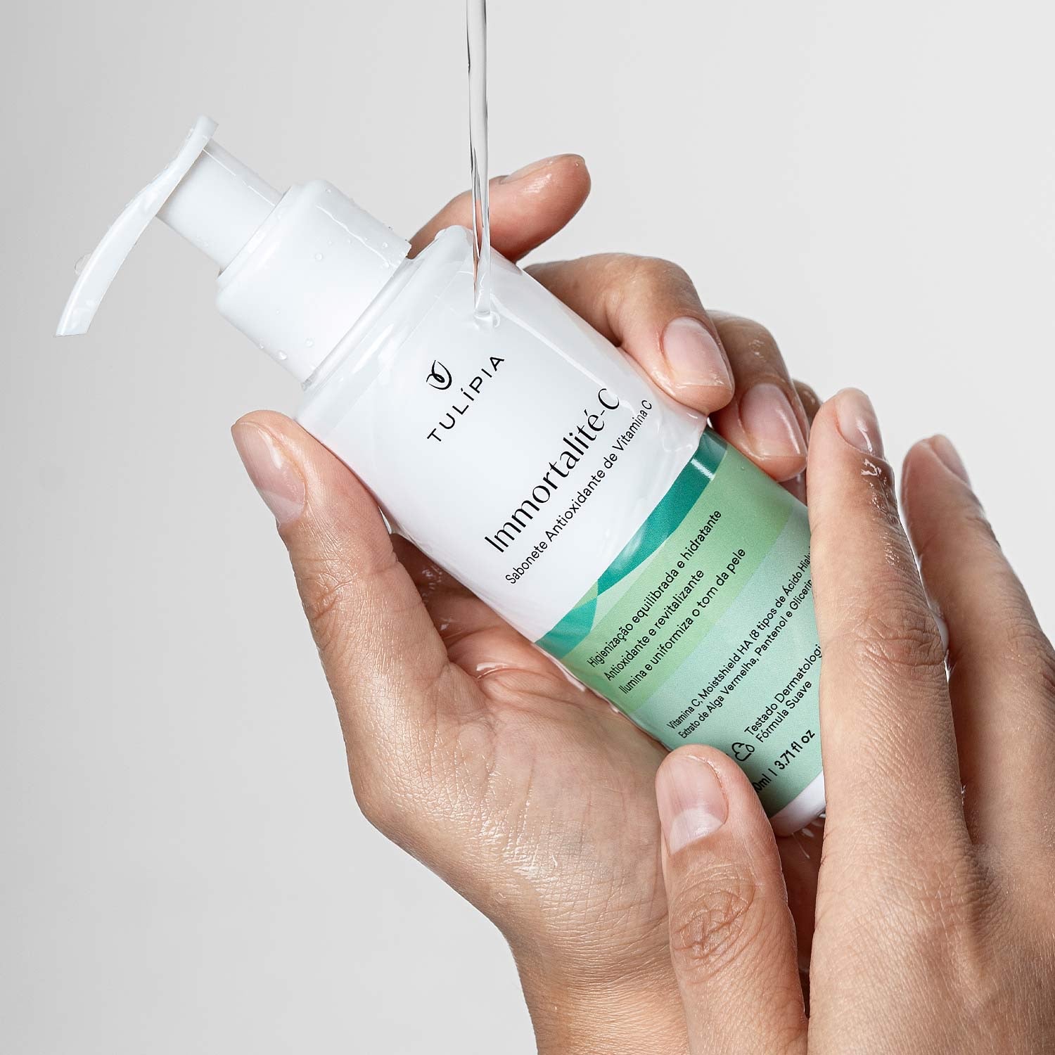 Composição: ÁGUA, ASCORBIL FOSFATO DE SÓDIO, HIALURONATO DE SÓDIO, EXTRATO DE CARRAGENINA, HIALURONATO DE HIDROXIPROPILTRIMÔNIO, ÁCIDO HIALURÔNICO HIDROLISADO, HIALURONATO DE SÓDIO ACETILADO, ÁCIDO HIALURÔNICO, CROSPOLÍMERO DE HIALURONATO DE SÓDIO, HIALURONATO DE SÓDIO HIDROLISADO, HIALURONATO DE POTÁSSIO, GLICEROL, PANTENOL, CROSPOLÍMERO DE ACRILATOS, LAURAMIDOPROPILBETAÍNA, MIRISTAMIDOPROPIL BETAÍNA, CLORETO DE SÓDIO, HIDRÓXIDO DE SÓDIO, LAURETE SULFOSUCCINATO DISSÓDICO, BENZOATO DE SODIO, METIL 2-SULFOLAURATO DE SÓDIO, CETIL BETAÍNA, LAURIL BETAÍNA, LACTATO DE LAURIL LACTILA, DIMETIL LAURAMIDA/MIRISTAMIDA, ACETATO DE TOCOFERILA, 1,2-HEXANODIOL, GOMA XANTANA, CAPRILILGLICOL, BUTILENO GLICOL, GLICOSE, ETILHEXILGLICERINA, FENOXIETANOL, AMINOMETILPROPANOL, COCAMIDOPROPIL BETAÍNA, PERFUME, EDETATO DISSÓDICO, CORANTE AMARELO CREPÚSCULO 15985, CORANTE VERMELHO DE PONCEAU 16255.
